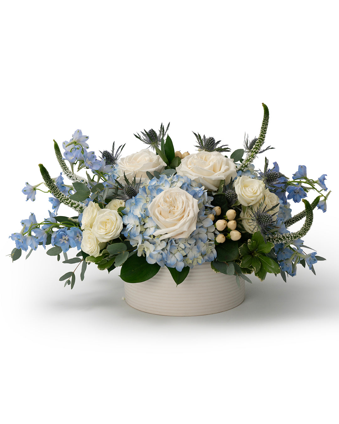Our Sapphire Collection celebrates the beauty of blue and white blooms — timeless, serene, and effortlessly elegant. Designed for every season, these arrangements bring a sense of grace and sophistication to any occasion.